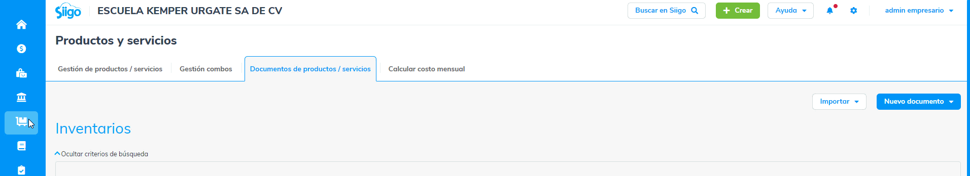 . En la pestaña Documentos de productos / servicios, haz clic en el botón Importar