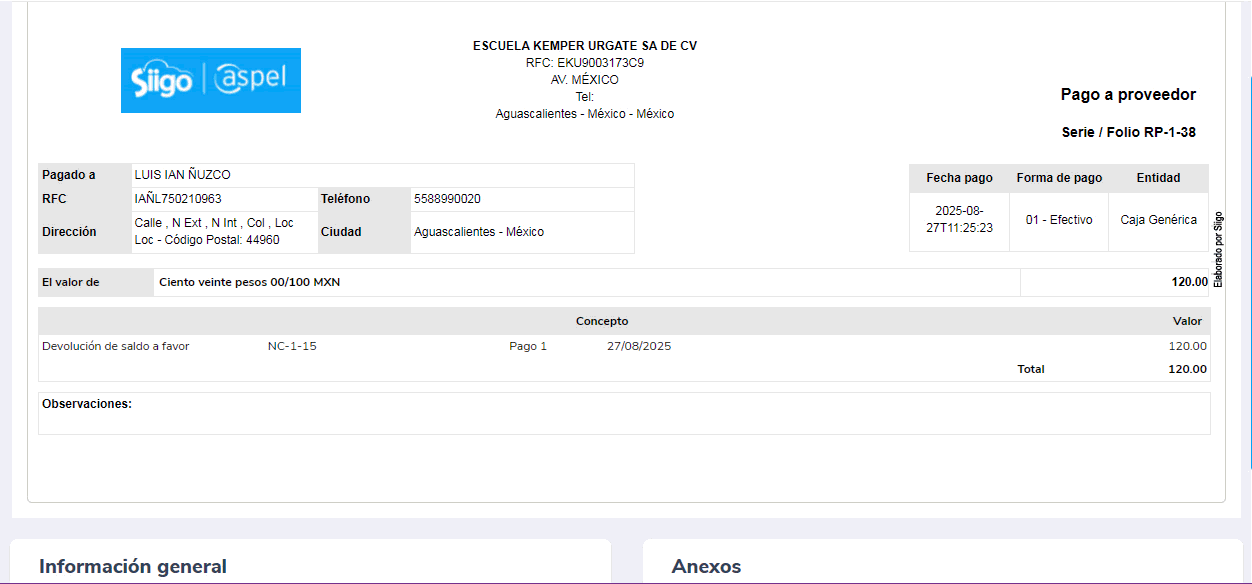 - Más: desde este botón podrás realizar algunos procesos adicionales con el pago a proveedor; como: