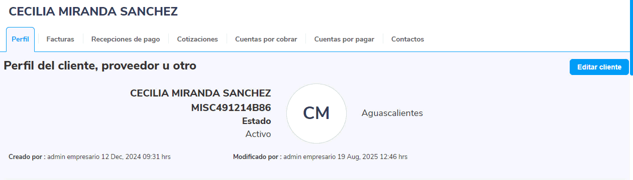 4. Dentro del perfil, haz clic en el botón Editar cliente