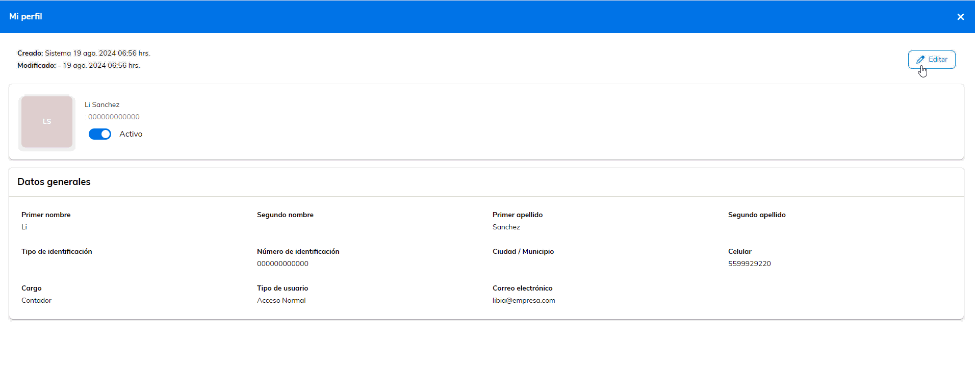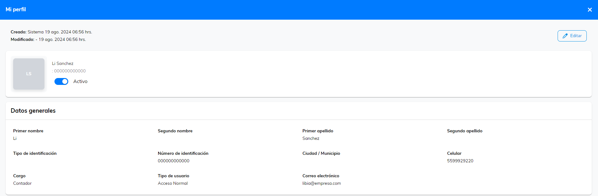 2. Para modificar la información, haz clic en el botón Editar