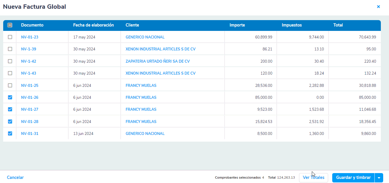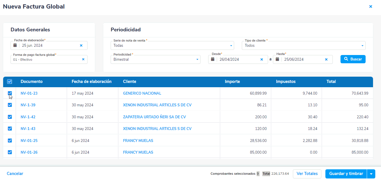 Para elaborar la factura global puedes hacer uso de las siguientes rutas:
