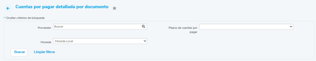 - Proveedor: puedes consultar las cuentas por pagar de un tercero específico, digitando sus datos o por medio de la lupa.