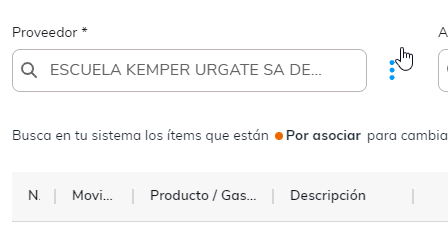 7. Ahora, asocia los gastos pendientes. Los identificarás porque en la columna Estado aparecen como Por asociar.